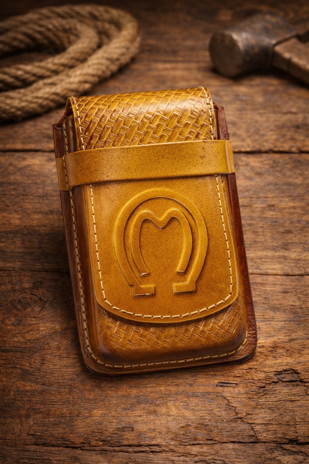 Bainha artesanal fabricada com acabamento de excelência. Acessório útil e versátil, comporta todos os modelos e tamanhos de celulares, e possui presilha traseira para encaixe no cinto.