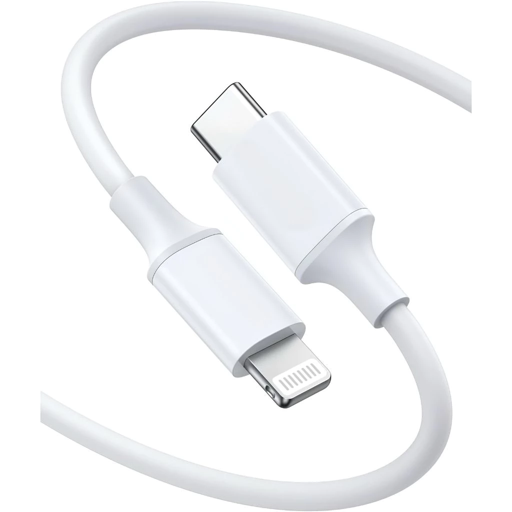 Cabo de dados USB C - Lightning. Compatível para a transferência de dados e para carregamento rápido. Fabricado em plástico. Alta qualidade e resistência. Comprimento de 1 metro.