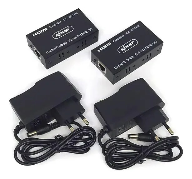 Realiza extensão HDMI até 60 metros de distância. Tecnologia de extensão HDMI, taxa de transmissão de alta velocidade, suporta alta definição 1080p, formatos de vídeo 3D, utiliza núcleo de cobre e cabo de rede CAT5E/6 para a conexão a longa distância de transmissão sem perda de sinal.