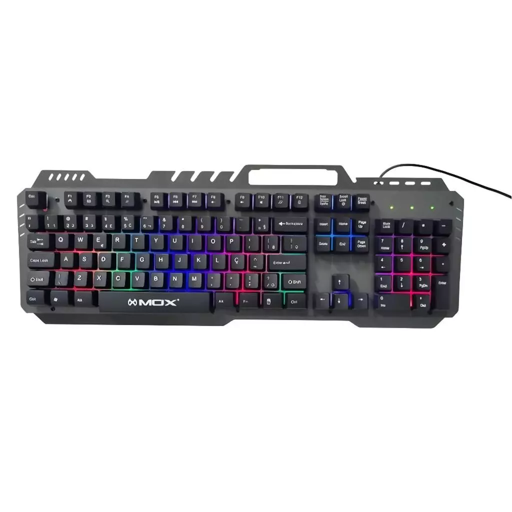 Teclado gamer metálico com painel de alumínio. Possui designer ergonômico, durabilidade e resistência ao desgaste. Contém tecla para ativar o sistema de iluminação LED. Teclado com 104 teclas programáveis.